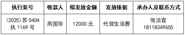 为进一步加强执行案款收发管理工作,维护当事人合法权益,推动执行工作透明公开,根据《最高人民法院关于执行款物管理工作的规定》和《江苏省高级人民法院关于在全省法院建立执行案款信息公开和对账核查制度的通知》,现对以下执行案款发放事宜予以公示,公示期为三天(自发出本公示之日起计算)。公示期间,案件当事人或其他利害关系人对案款发放有异议的,可在公示期内向本院提交书面意见并附证据材料,由本院审查处理。公示期满且无异议的,本院将按照执行案款管理规定办理发放手续。