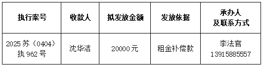 为进一步加强执行案款收发管理工作,维护当事人合法权益,推动执行工作透明公开,根据《最高人民法院关于执行款物管理工作的规定》和《江苏省高级人民法院关于在全省法院建立执行案款信息公开和对账核查制度的通知》,现对以下执行案款发放事宜予以公示,公示期为三天(自发出本公示之日起计算)。公示期间,案件当事人或其他利害关系人对案款发放有异议的,可在公示期内向本院提交书面意见并附证据材料,由本院审查处理。公示期满且无异议的,本院将按照执行案款管理规定办理发放手续。