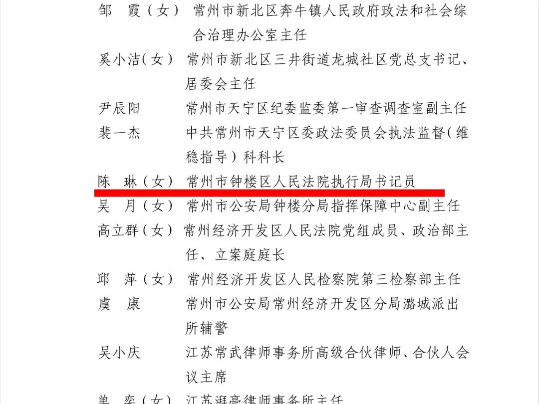 为表彰先进、树立典型,进一步激发全市广大干部群众干事创业的责任感、使命感,近日,中共常州市委、常州市人民政府发布了关于表彰2024年度全市优化营商环境工作先进集体和先进个人的决定,钟楼法院立案庭(诉讼服务中心)、执行局书记员陈琳分别获评2024年度常州市优化营商环境工作先进集体、先进个人。